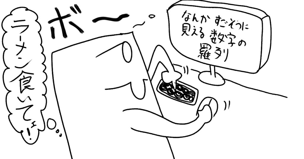 しかも、側から見れば、PC上にはなんか凄い数字が羅列しており、この作業の詳細を全く知らない人からすれば「な・・・なんか凄い事をやっているぞ・・・」「く・・・!複雑な仕事すぎる!!」と勝手に思ってくれます。実際は右から左にコピペしてるだけです。