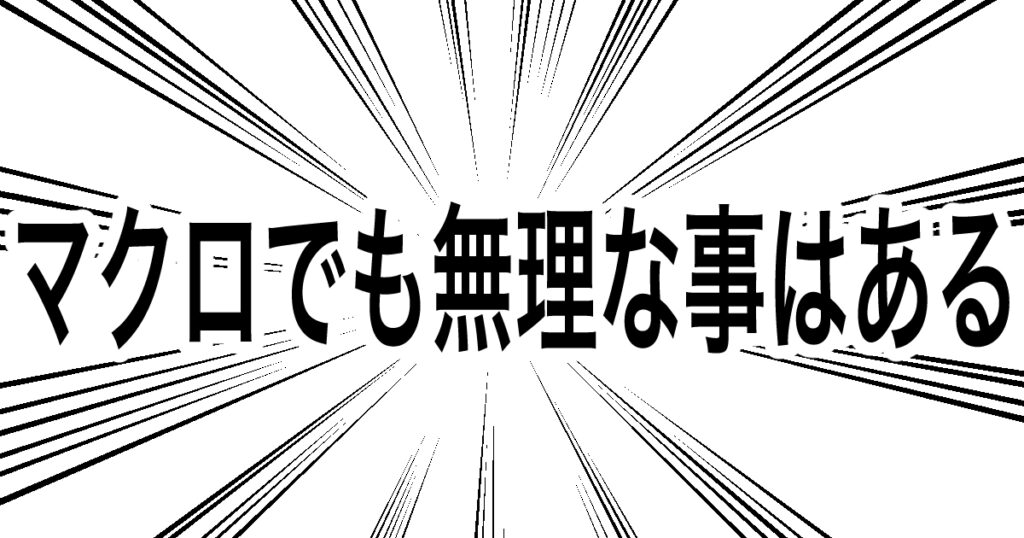 しっかし、マクロってやべぇなとあらためて実感しました。だって1時間が5秒よ?あまりにも時短されすぎて、マリカだったらジュゲムにショートカット前にいたコースに逆走扱いで戻されるぐらいのショートカットレベルです。