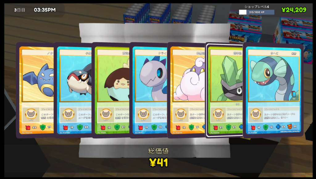 ちなみにカードは売らずに開封する事も出来ます。試しに開封をしてみたら、合計価値は41円で1、50円ぐらいで納品したので大赤字をかましました。