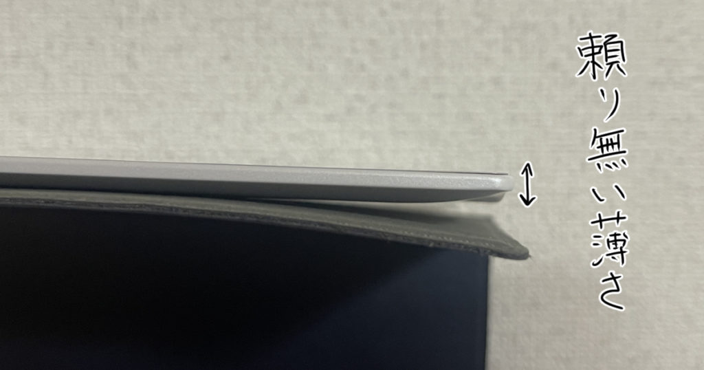 ただ、この薄さに関してはあんまりメリットになっておらず、何か衝撃を与えた時にすぐに曲がってしまうんじゃ無いかという恐ろしさがあります。