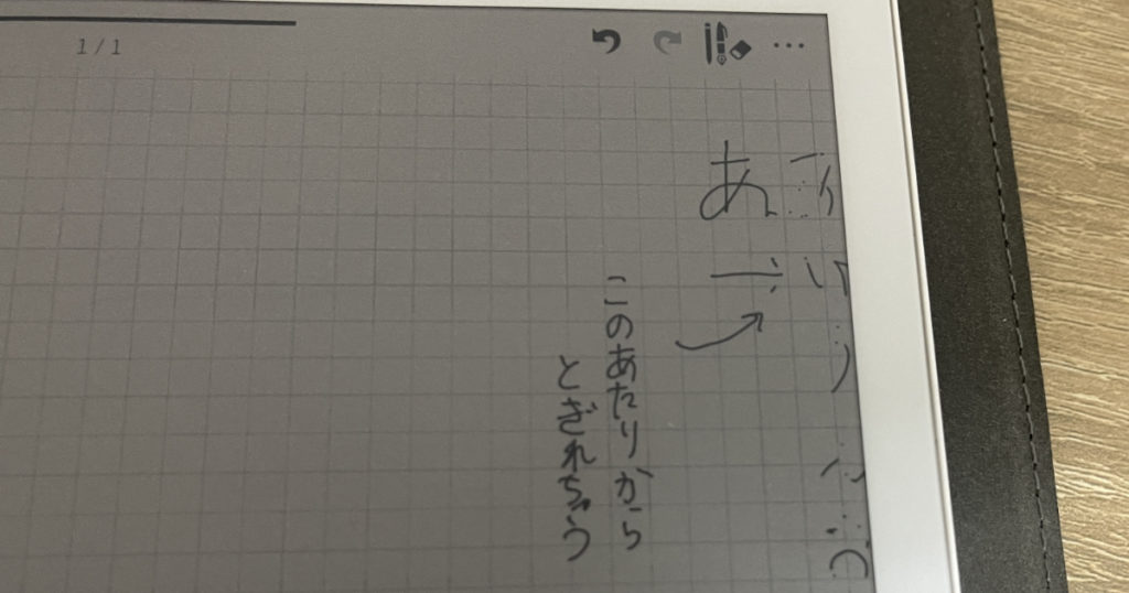 公式HPには「センサーの反応位置の関係でそうなることがある」と記載されていますが、これが結構な頻度で発生(というより、ほとんど端っこは書けないと考えて良い)するので、地味にストレスです。ボールペンで書いてて急に書き味がカスになる感覚と似ています。