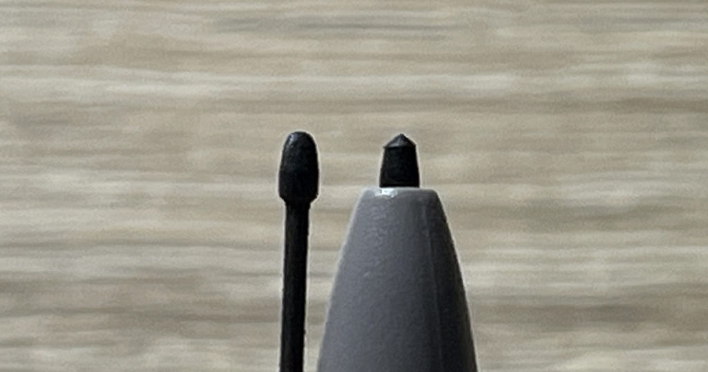 左が新品で右が使用中のペン先です。あきらかに削れてます