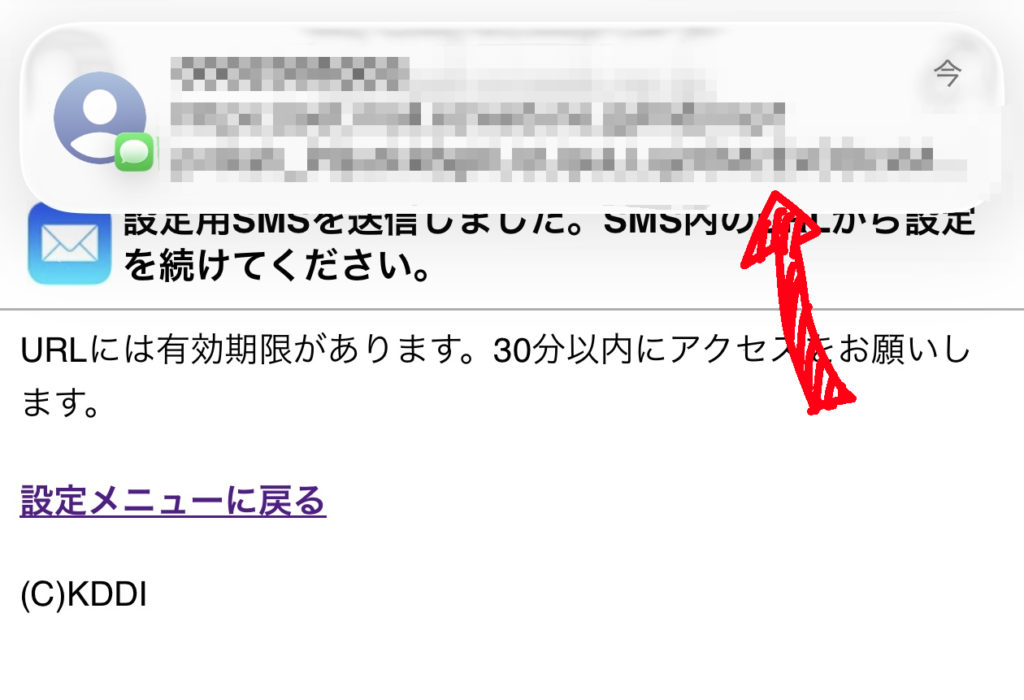 メッセージにURLが送られるのでそれをクリック