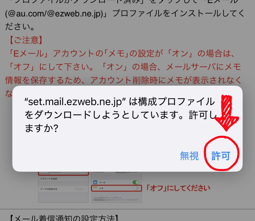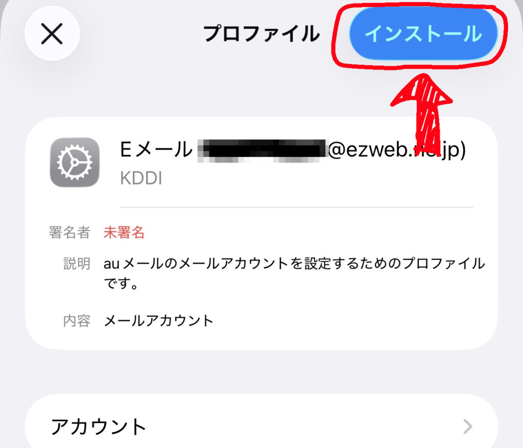 最後に上部の「インストール」をクリックすれば、あとはメールアプリで自動的に設定されて使用できているはず