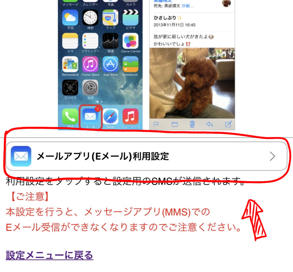真ん中の「メールアプリ(Eメール)利用設定」をクリック
